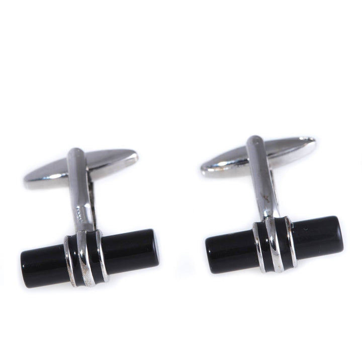 Rhodium Plated and Black Enamel Motorcycle Cufflinks