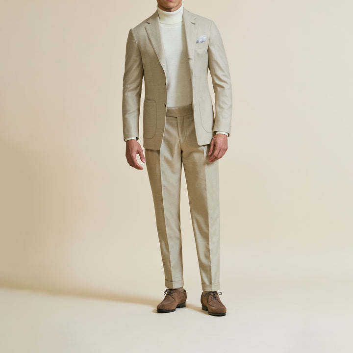 Suit - Loro Piana Beige Stretch Wool Blend Flannel 5916