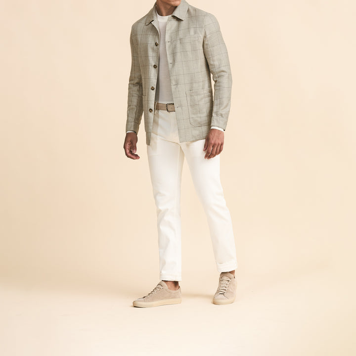 Sport Coat - Sand Wool-Silk-Linen with Grey Check by Loro Piana 9100