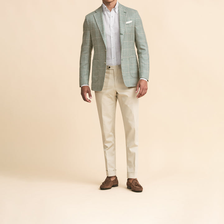 Sport Coat - Light Green-Ivory Wool-Silk-Linen Houndstooth with Sand Windowpane 9118