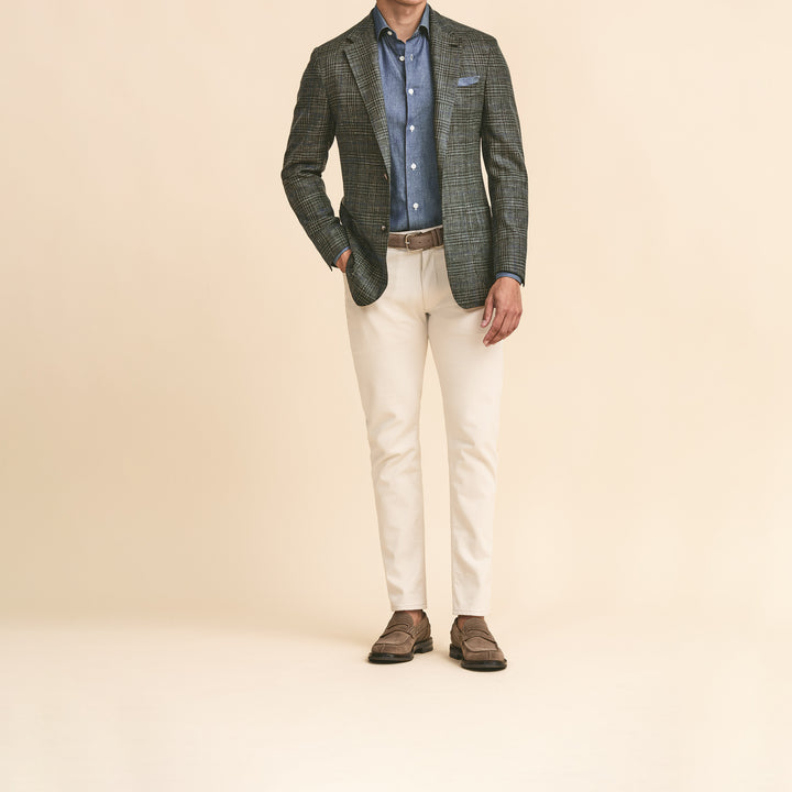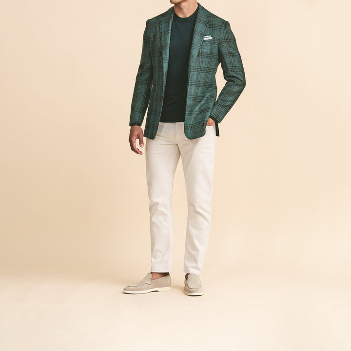 Sport Coat - Green Wool-Silk-Linen Check with Blue Overcheck by Loro Piana 9122