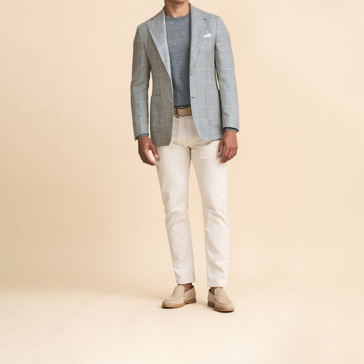 Sport Coat - Storm Blue-Ivory Wool-Silk-Linen Houndstooth with Sand Windowpane 9124
